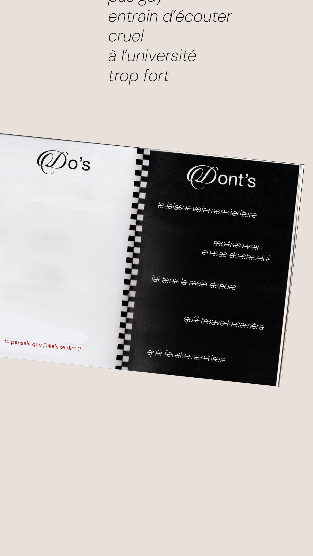 Le ciel l'embrasse. Comme elle est gentille avec lui. Elle laisse exprĂšs son baume Ă lĂšvres sur ses verres avant de partir, parfois elle garde mĂȘme ses rideaux tirĂ©s pour qu'il puisse la regarder. (Je me se sens si privilĂ©giĂ© !) Il doit lui faire honneur, alors il a commencĂ© Ă la prendre en photo, sous ses plus jolis angles. D'une candeur, persuadĂ© de la naissance d'un amour.Les deux femmes ne peuvent pourtant pas coexister, c'est sa mĂšre qui l'a dĂ©couvert. D'une crise violente Ă l'idĂ©e qu'Adonys puisse trouver une libertĂ© hors de son emprise. Elle a Ă©tĂ© si cruelle qu'il est celui qui a fini par supplier qu'elle ne parte pas. (Sans moi, elle n'a plus de raison de vivre. C'est ce qu'elle a dit !) Elle est folle, il le sait, mais elle n'a que lui. S'il devait la laisser, elle serait seule au monde, c'est elle qui lui a dit. Elle lui a dit. Redit. Elle le dit encore. C'est son garçon Ă elle.