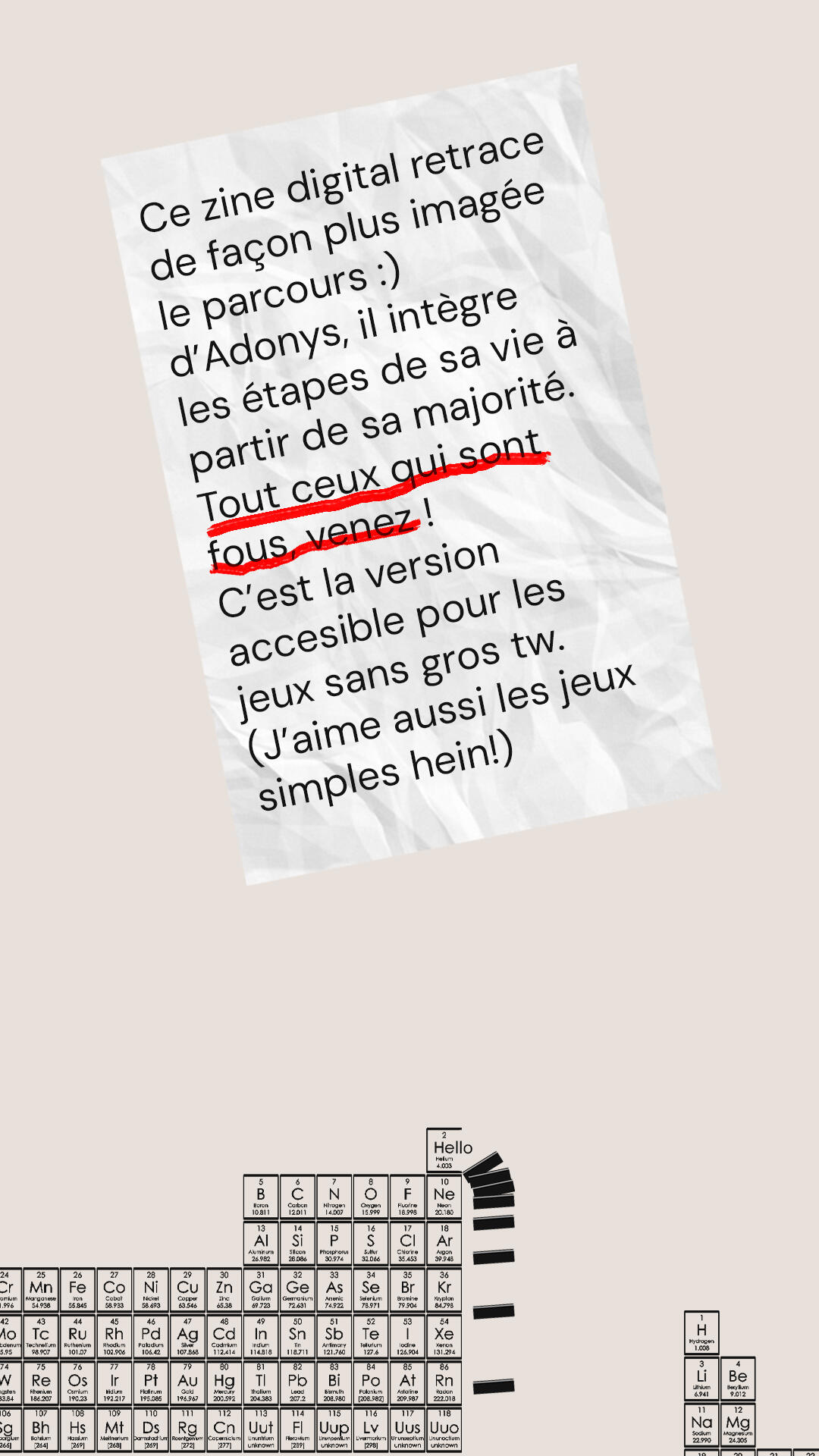 â Adonys Ă©tant un personnage inventĂ© depuis plus d'un an, son histoire est assez riche en informations. Certains passages manquent encore Ă l'appel, mais vous n'ĂȘtes Ă©videmment pas obligĂ©(e) de consulter toute la biographie avant de jouer avec ce personnage.â Avertissements de contenu (TW) : manipulation Ă©motionnelle, troubles mentaux, maltraitance infantile, stalking, mention explicite de suicide.â Concernant mes propres TW, je tiens Ă prĂ©ciser que nous ne sommes pas ici pour exorciser l'horreur. Je n'accepte pas de violence graphique injustifiĂ©e entre nos personnages. Au-delĂ de cela, je n'ai pas de TW spĂ©cifiques.â Veuillez noter que tout ceci n'est qu'une fiction. Si vous vivez une situation impliquant une emprise psychologique violente ou une grande dĂ©tresse, des aides et des numĂ©ros d'urgence existent.â Tout ce qui est abordĂ© ou jouĂ© est documentĂ© au prĂ©alable. Si des erreurs se glissent malgrĂ© tout, je suis ouverte aux commentaires et aux prĂ©cisions.â Si quoi que ce soit vous met mal Ă l'aise, n'hĂ©sitez pas Ă me le signaler. Aucune justification n'est nĂ©cessaire, car la sensibilitĂ© de chacun varie. Cependant, le cĂŽtĂ© plus sombre d'Adonys ne sera jouĂ© qu'avec les joueurs ayant donnĂ© leur accord.Merci pour votre intĂ©rĂȘt, et Ă bientĂŽt je l'espĂšre.