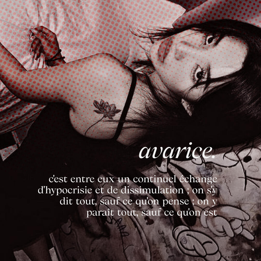Si le monde ne souhaite pas le voir exister, alors il a trouvĂ© sa propre maniĂšre de s'y glisser. Les belles paroles glissent de sa bouche, les cils s'agitent, garçons ou filles cela n'a pas d'importance. Le plaisir est vicieux quand il parvient Ă trouver ces Ăąmes en peine, elles demandent si peu et il sait comment donner. Ăa le fait se sentir si vivant qu'il en a construit son monde ainsi.Adonys se prĂ©sente comme une vitrine bien rangĂ©e, elle regorge de diffĂ©rents objets et il sait parfaitement l'adapter Ă celle qui vient regarder. Cette perfection semble convenir Ă tous, il a rĂ©ussi Ă trouver comment s'accorder Ă la symphonie vicieuse de la vie.